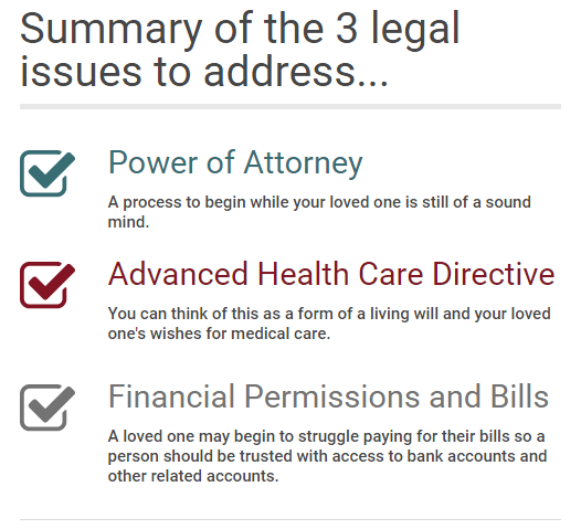 Three issues are typically an important part of this process: a power of attorney, advanced directives and permission to pay bills and manage finances.